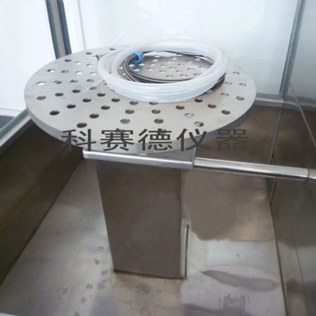 四、噴水試驗(yàn)箱IPX56適用于考核電工產(chǎn)品,外殼和密封在淋雨環(huán)境下能否保證設(shè)備和元件良好性能的試驗(yàn)。本產(chǎn)品采用科學(xué)設(shè)計,使得該設(shè)備能夠逼真的模擬滴水,淋水,濺水,噴水等各種環(huán)境。走進(jìn)全面的控制系統(tǒng)以及變頻技術(shù)的采用,使得降雨量試品架的回轉(zhuǎn)角度,噴水?dāng)[桿的擺動角度以及噴水量擺動頻率都可自動的調(diào)節(jié)。